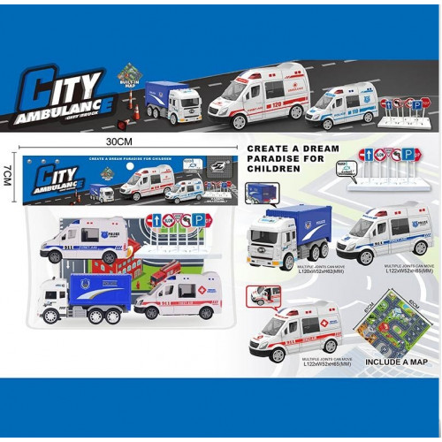 Набір машин інерц Міська швидка 3шт, пакет 26*23см JW567-049