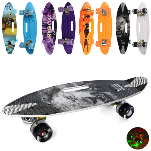 Скейт Пенні борд з ручкою, PU світ, дошка 60*16см, MS 0461-7